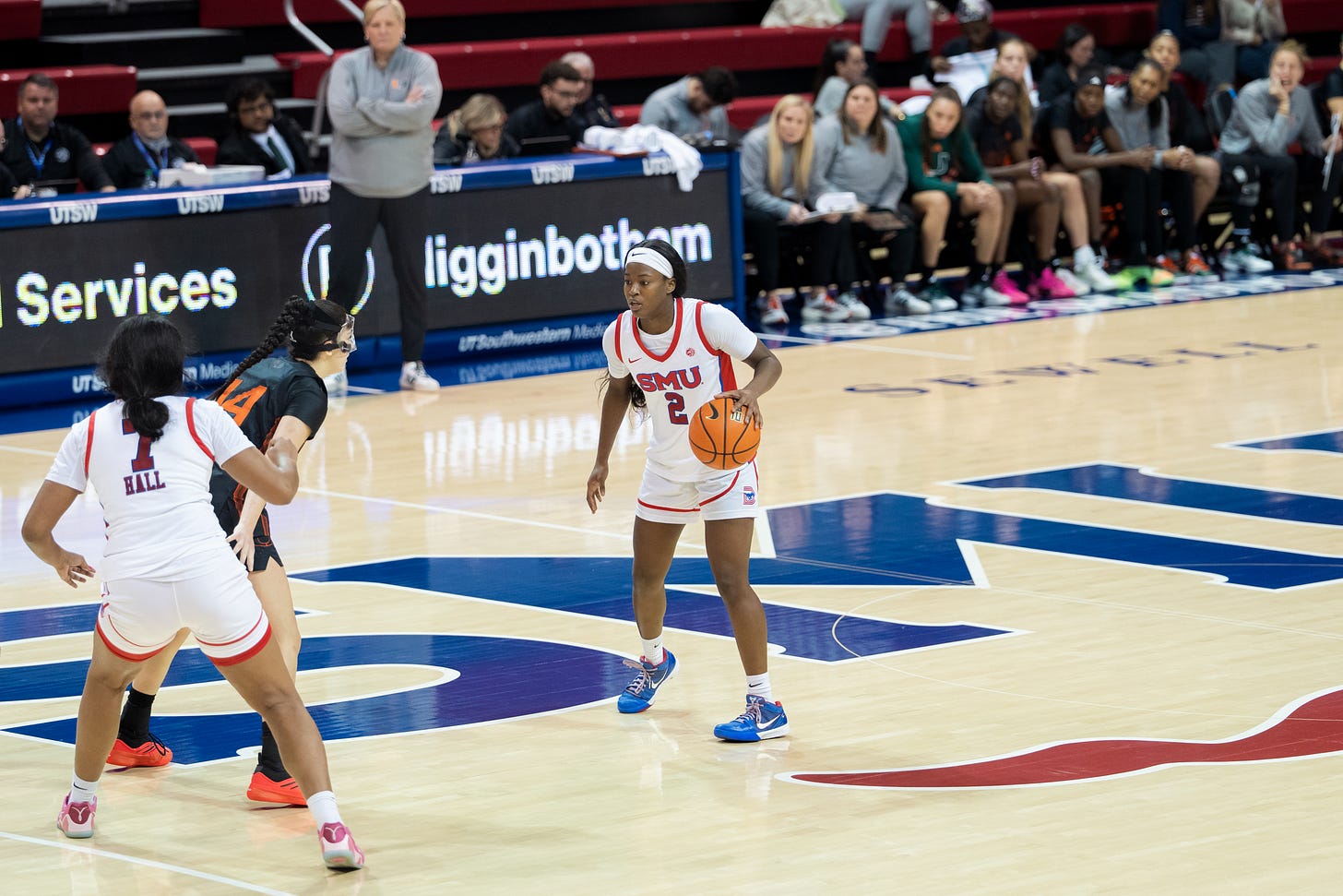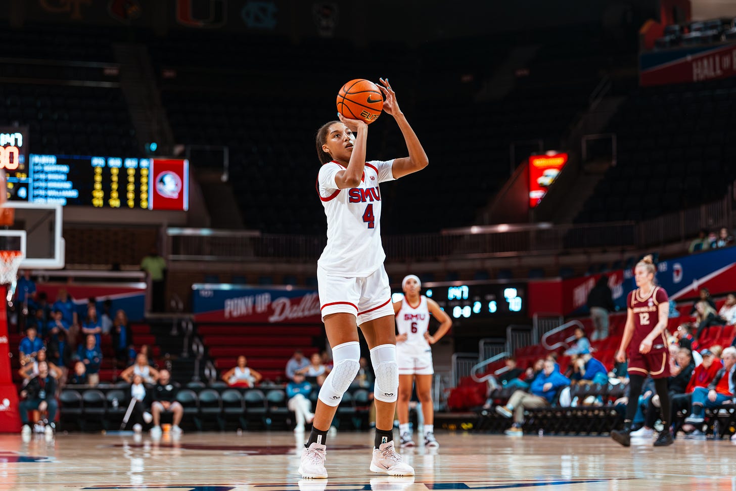 The facility is amazing. Both SMU’s men’s and women’s basketball play in this arena. It is just a hallway away from the locker rooms, as well as where they lift, get treatment and practice in Crum Basketball Center. Each team has their own practice court across from their locker rooms. This stood out to me as most women’s programs don’t have their own practice court. It shows that SMU cares and is investing in women’s basketball.